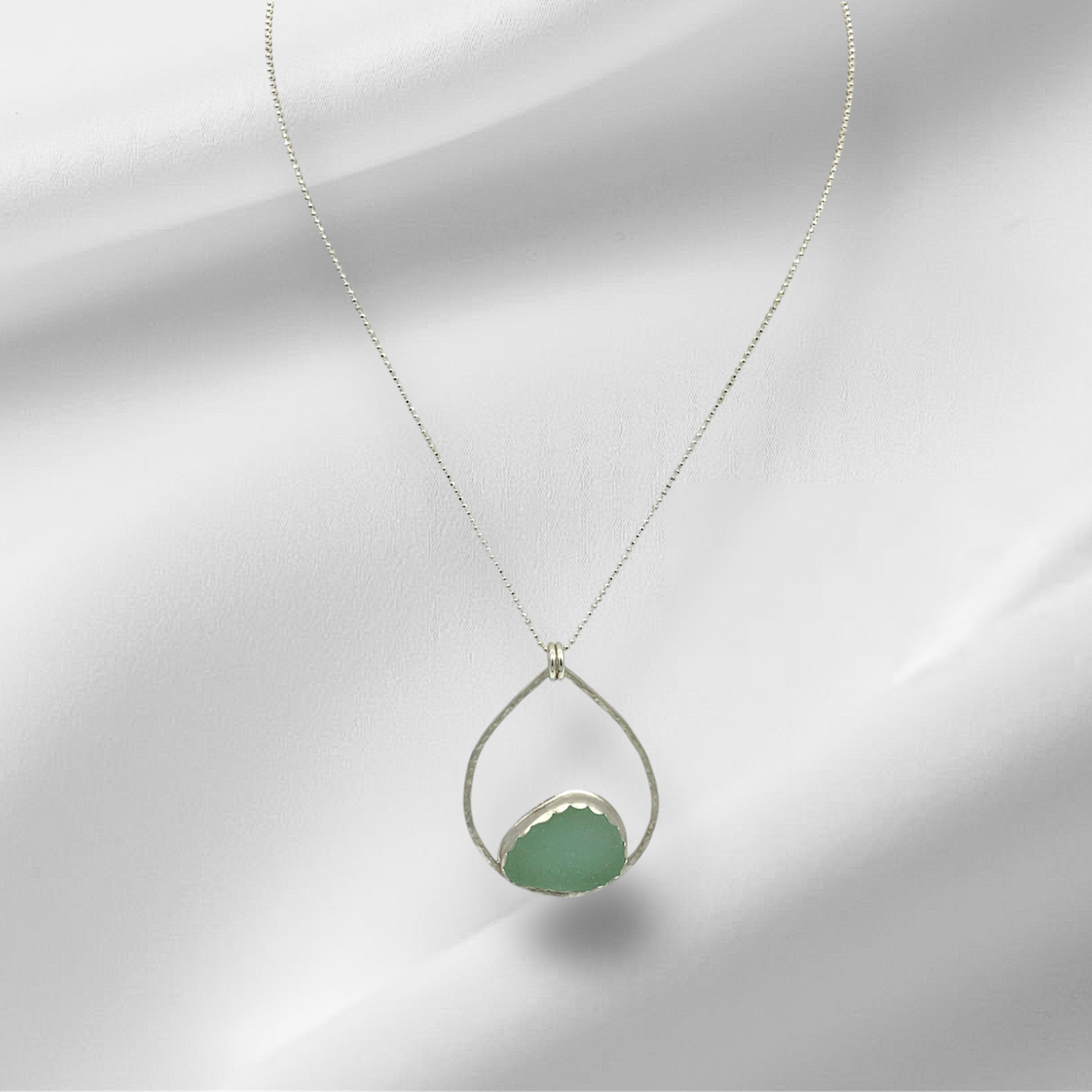 Indulge in the rare beauty of the Aqua Pendant. This exquisite piece features authentic sea glass, encased in a sterling silver setting for a touch of elegance. Adorn yourself with the natural wonder and exclusive charm of this pendant.