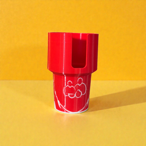 The holder is purpose-built to securely hold our large Whale Tail mugs, while still working with standard ceramic mugs and many insulated travel mugs (including Stanley-style). The flexible walls grip the mug upright and stable without rattling or tipping. When not in use as a drink holder, it doubles as a compact car trash can.