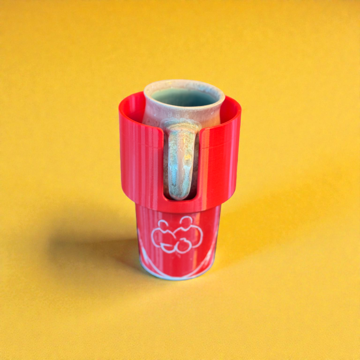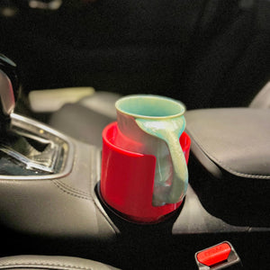 We designed this because our mugs don’t fit in normal cup holders. Our ceramic mugs are intentionally made with larger bases and wider, more comfortable handles, and nearly every car cup holder ignores that reality. Rather than compromise our mugs, we designed a holder specifically for them.