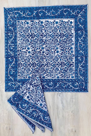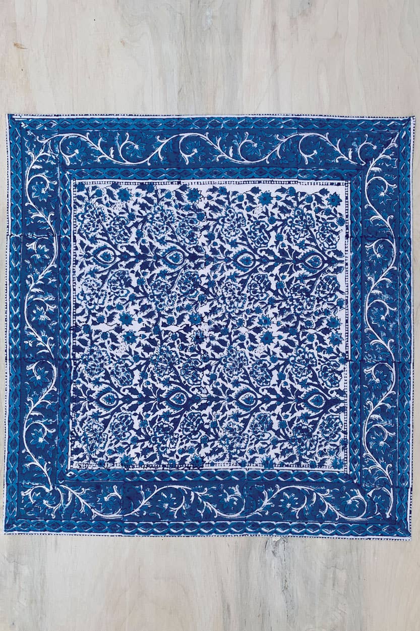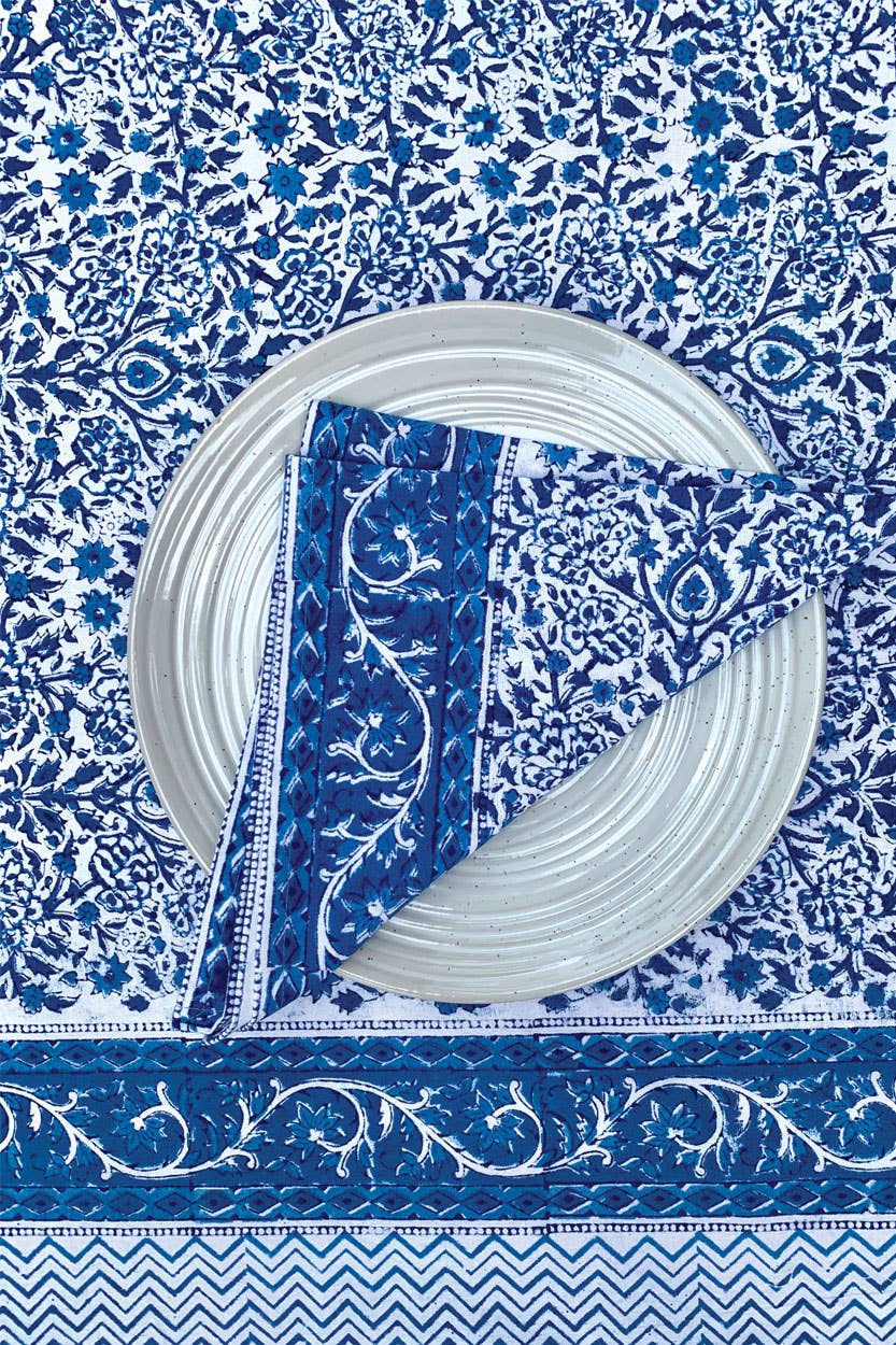 The Blue Vine Napkin Set is made with soft 100% cotton that is hand block printed.