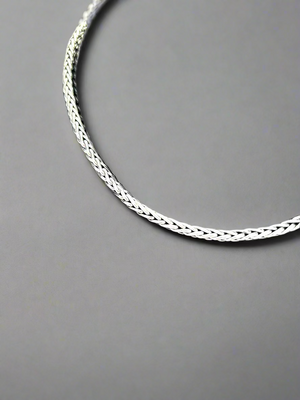 Indulge in the luxurious elegance of our Braided Chain Necklace. Exquisitely crafted from sterling silver, this necklace features a beautifully intertwined design and beaded endcaps. Elevate your accessory game with this sophisticated and exclusive piece.