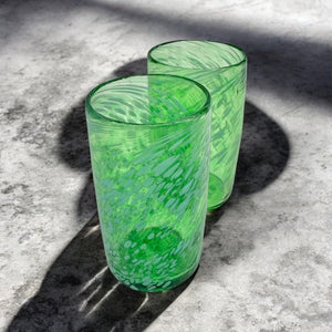 Serve up some fun with the Bristol Speckle Juice Cup! Hand blown in New England, this glassware adds a touch of quirkiness to your drinkware collection. Enjoy a refreshing beverage in style with this unique piece.