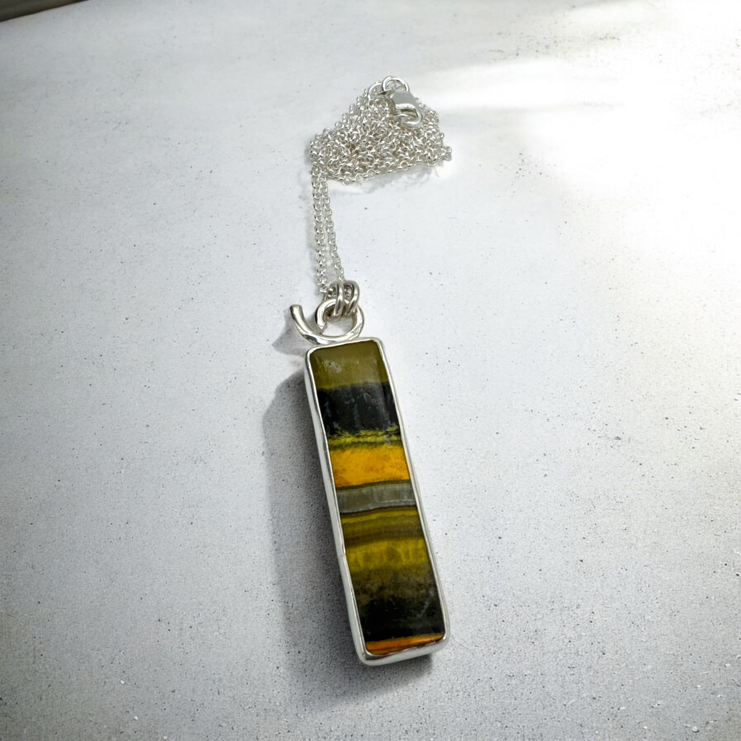 - 1.25"H x .5"W Bumble Bee Jaspar in Sterling Silver