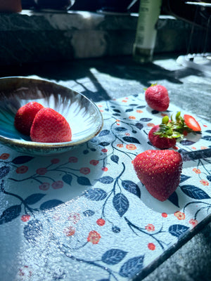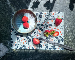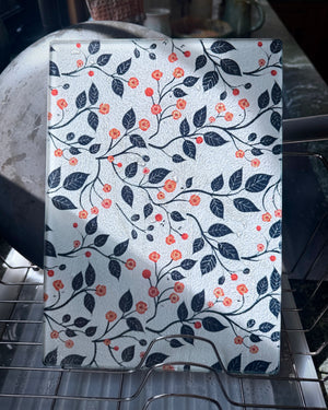 Bring a dash of history and style to your kitchen with this tempered glass cutting board, featuring a pattern we created from a scan of one of my mom’s old art history books. The textured surface makes chopping, slicing, and dicing a breeze, while the tempered glass stands up to years of delicious use.