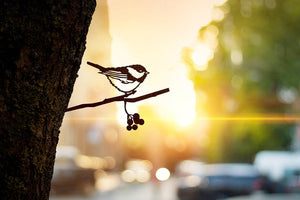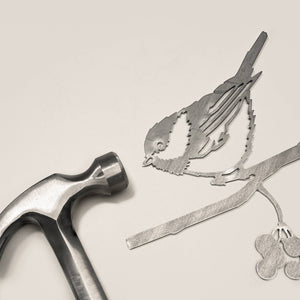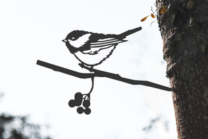 Chickadee is: ✓ 3.3 inches high by 6.2 inches wide (exl. the branch), approximately 8oz ✓ Easy to send - our regular boxes are standard letter size, measuring 11" x 8" x 1/4" ✓ Made in a family-owned factory, right here in the US ✓Crafted from 1/8-inch Corten steel and designed to last a lifetime