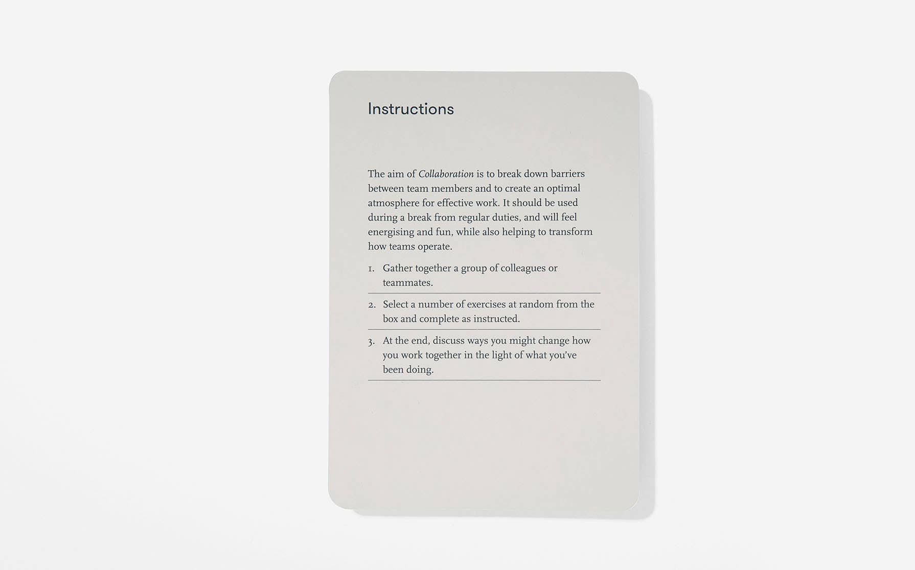 Collaboration is the ultimate tool for fostering teamwork and enhancing productivity. With 52 carefully crafted exercises, this resource is specifically designed to cultivate empathy, insight, and trust among colleagues. By engaging in a variety of tasks and thought-provoking exercises, teams can transform their work atmosphere and strengthen their ability to work together harmoniously. Packed with playful and entertaining activities, this collaboration tool offers a fun and effective way for individuals to understand each other's perspectives and enhance cooperation. Get ready to unleash the true potential of your team with this valuable resource.