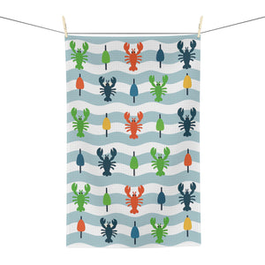 Colorful Lobster & Buoy Tea Towel that brings a coastal vibe to your kitchen. Made of microfiber polyester and polyamide, this durable and quick-drying towel is perfect for seafood lovers and beach enthusiasts. Ideal for summer parties, beach house decor, and coastal kitchen themes.