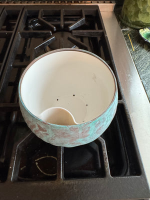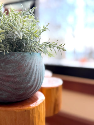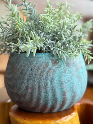 A modern, coastal planter with a real copper patina finish—hand shaped, sanded, annealed, and patina’d in our Maine studio using USA-sourced materials. Each piece is sealed with a clear acrylic coat for protection, but copper is alive by nature and may continue to subtly patina and change over time, adding character.