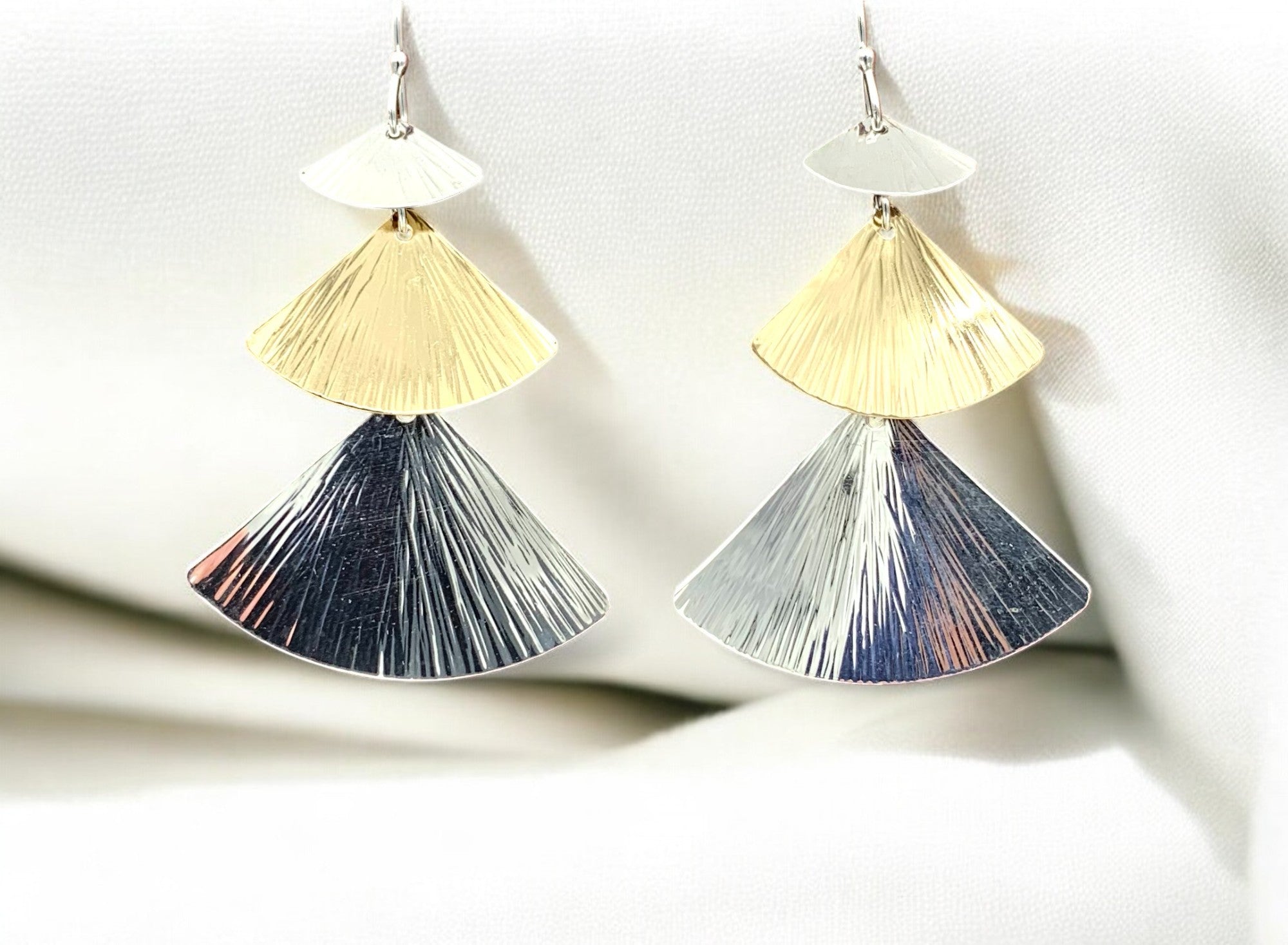 These hand hammered sterling silver and 14 Kt gold fill earrings are modern and stylish.