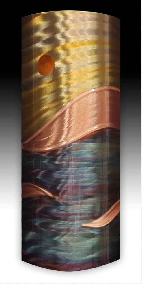 The art of flame painting is a unique process of torch work that brings out beautiful colors in the copper. There are no chemicals, paints, acids, or stains used in this process. After the piece is finished it is sealed with a special finish to prevent patina while also offering a UV protectant so that the piece may be displayed in the sun.