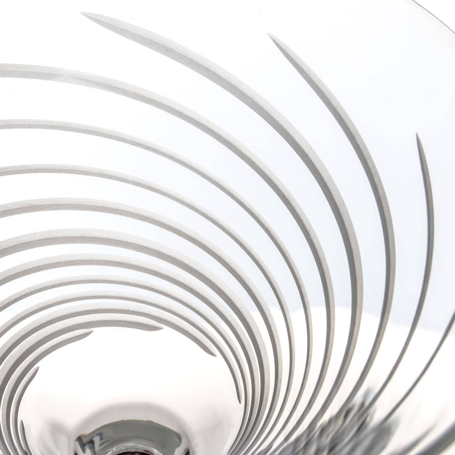 A swirling pattern of deep engravings spirals counterclockwise around this 10oz martini glass, producing a mesmerizing sense of movement. The dynamic design transforms your cocktail hour into a visual experience, making each sip feel like part of something in motion.