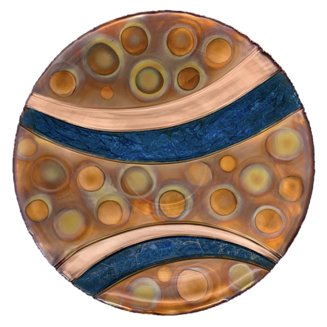 Transform your space into a chic and sophisticated haven with our Dots & Curves wall art. Featuring a shimmering copper disc, this stunning piece adds a touch of luxury to any room. Its modern blue and copper color scheme will elevate your decor and make a statement that sets your space apart.
