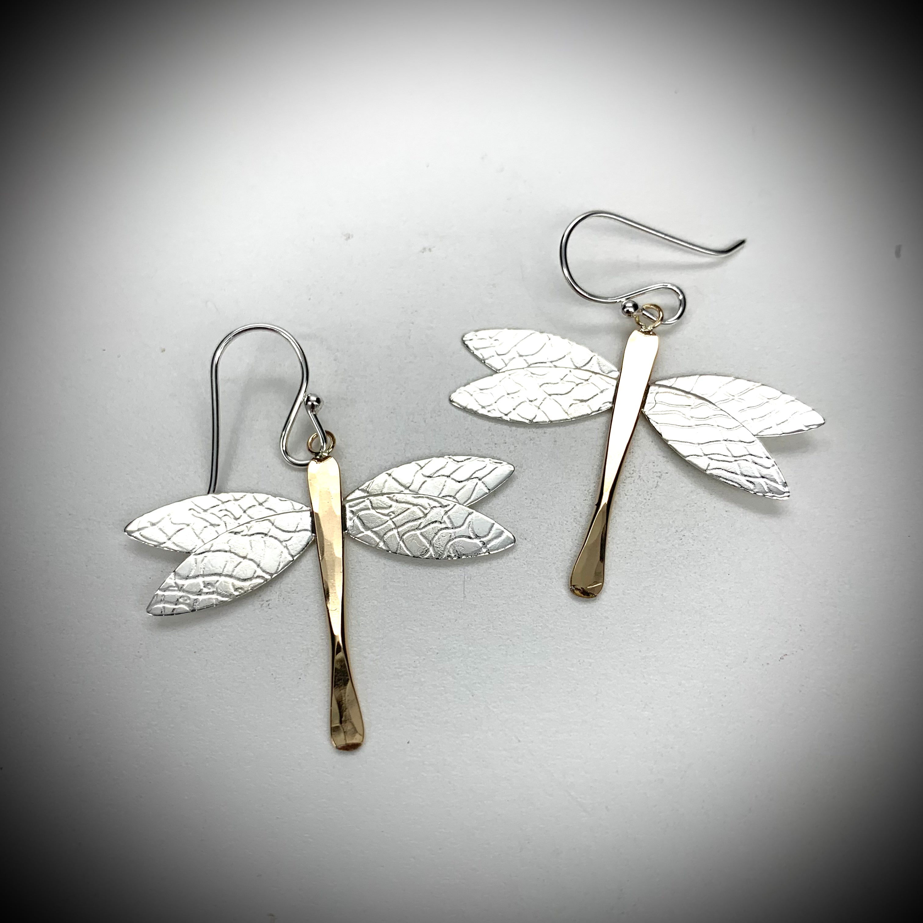 Sterling silver finely detailed wings and 14 Kt gold fill softly body creating a whimsical compliment to any occasion.