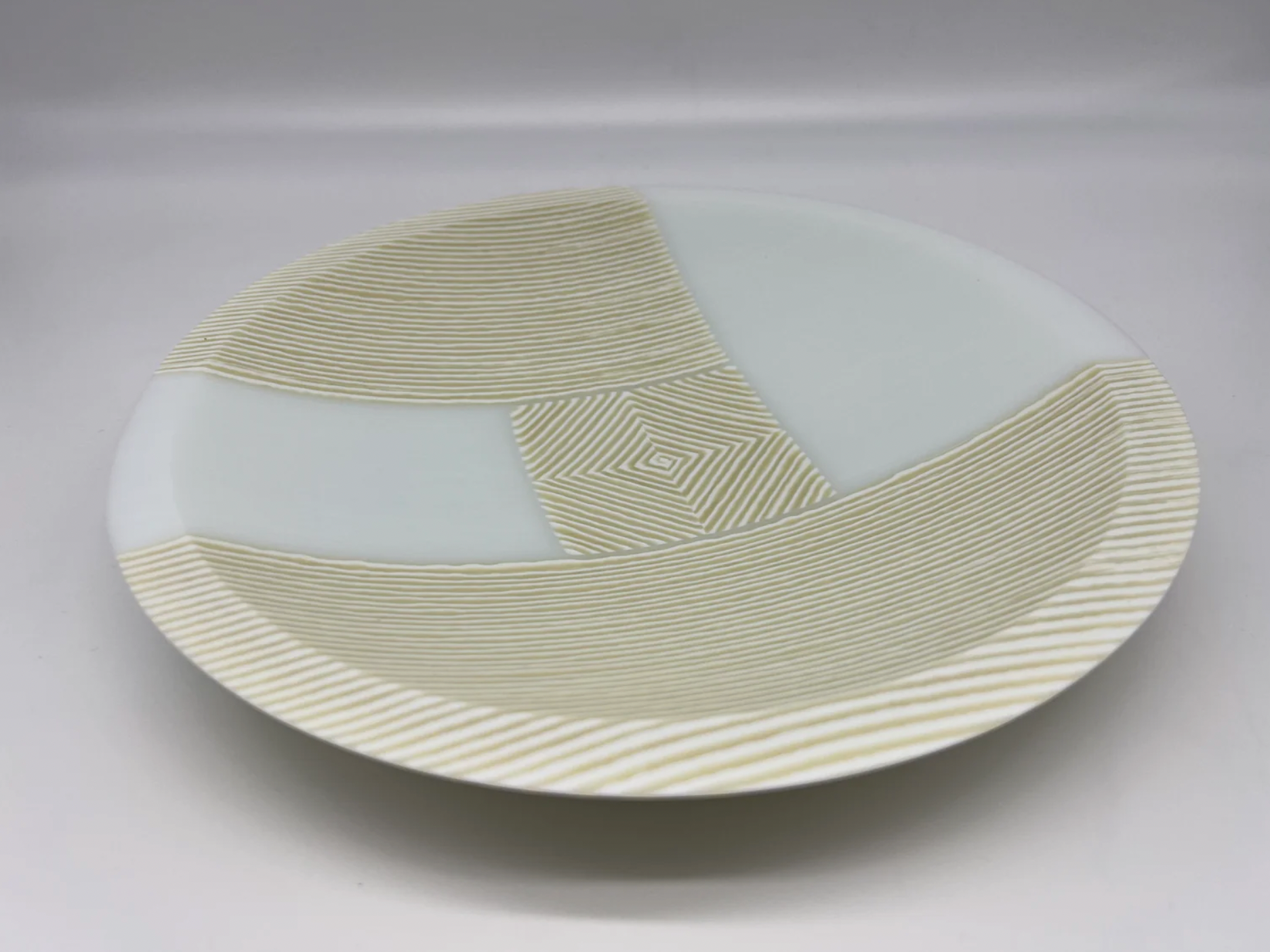 Constructed of french vanilla, white and clear glass utilizing the strip cut method and adding an inlay look for the center this bowl will be useful AND decorative in any household. Pair it with the Frost Platter for a beautiful set. Food safe but...