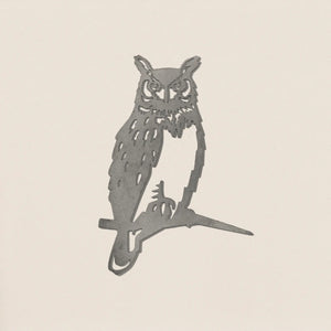 Great Horned Owl is: ✓ 12 inches high by 5 inches wide (exl. the branch), approximately 8oz ✓ Easy to send - our regular boxes are standard letter size, measuring 11" x 8" x 1/4" ✓ Made in a family-owned factory, right here in the US ✓Crafted from 1/8-inch Corten steel and designed to last a lifetime ✓ Easy to install holding on a downwards angle simply tap the thickest end of the stake with a hammer or mallet until secure