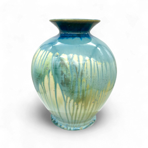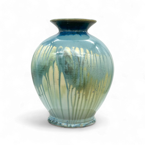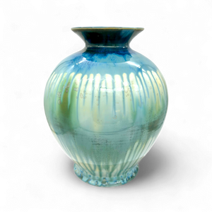 This one-of-a-kind vase is a true relic of Richard and Chris’s early legacy, crafted during the late 1970s to early 1980s—a time when Richard was deeply immersed in perfecting crystal glazes. Featuring a delicate robin’s egg blue at the top, transitioning gracefully into the experimental...