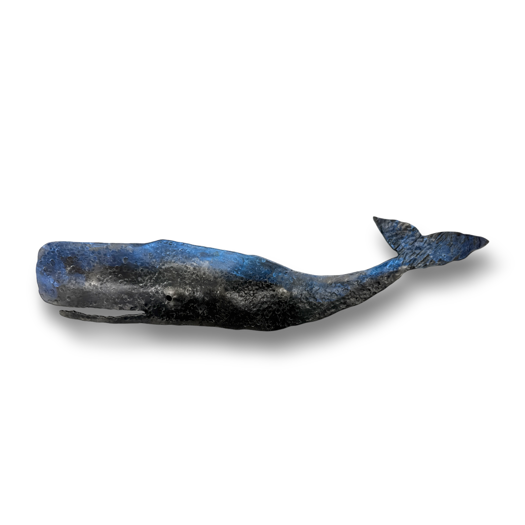 This contemporary wall sculpture is a unique and beautiful addition to any home. Featuring a one of a kind textured metal whale design, the Medium Whale adds a nautical touch to any space. Perfect for everyday decor or special occasions.