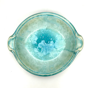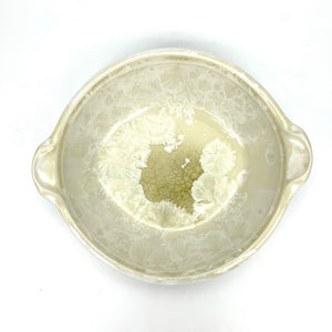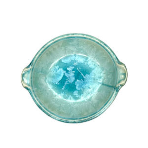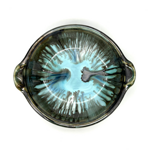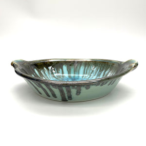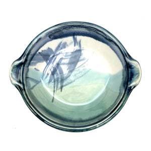 Great as a generous serving dish or a versatile dinner plate. ~9"HANDLES x 8"DIA x 2.25"D inchesMade of High Quality & Durable Porcelain Microwave & Dishwasher Safe (use gentle detergent) Made in Maine, USA Due to the natural product, color tone and texture may vary...