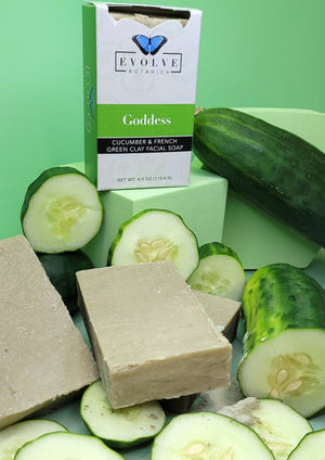 The perfect facial soap! Pureed cucumbers from one of our favorite local farmers to soothe dry delicate skin, French Green Clay absorbs impurities & oil, and makeup better than other clays. It cleans the pores and leaves skin silky smooth.