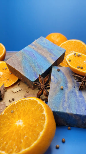 Ingredients: Olive Oil, Coconut Oil, Grapeseed Oil, Sustainably-sourced Palm Kernel Oil, Sodium Hydroxide, Water, Cocoa Butter, Shea Butter, Tonka Absolute, Cacao Absolute, Bitter Orange Essential Oil, Fragrance Oil, Ultramarine Blue Oxide, Mica.
