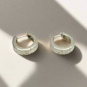 Indulge in a touch of luxury with our Oblong Textured Snap Hoop Earrings. Crafted from high-quality, hammered sterling silver, these earrings feature a unique snap hook design for easy wear. Add an elegant and exclusive touch to any outfit with these must-have earrings. .925 Sterling...