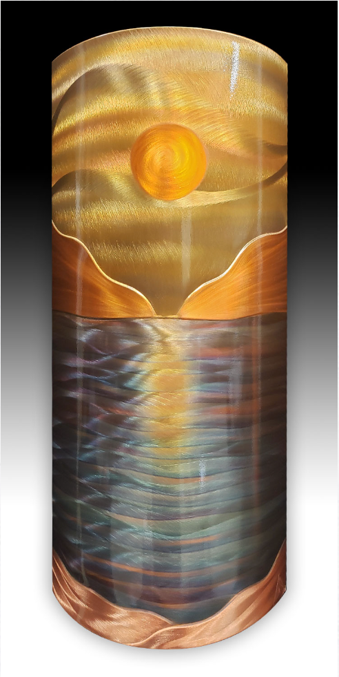 The art of flame painting is a unique process of torch work that brings out beautiful colors in the copper. The original process was discovered by our family and passed on to us to continue. There are no chemicals, paints, acids, or stains used in this process. After the piece is finished it is sealed with a special finish to prevent patina while also offering a UV protectant so that the piece may be displayed in the sun.