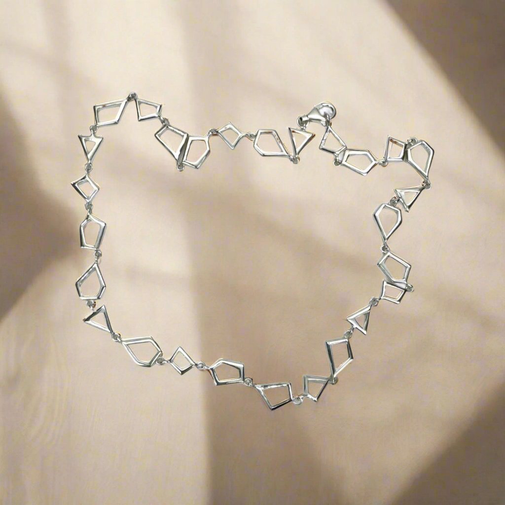 Add a touch of artistry to your ensemble with our Prism Link Necklace. Meticulously crafted with sterling silver, this necklace features a unique prism link design that catches the light in a stunning way. Elevate any outfit with this elegant and timeless piece.