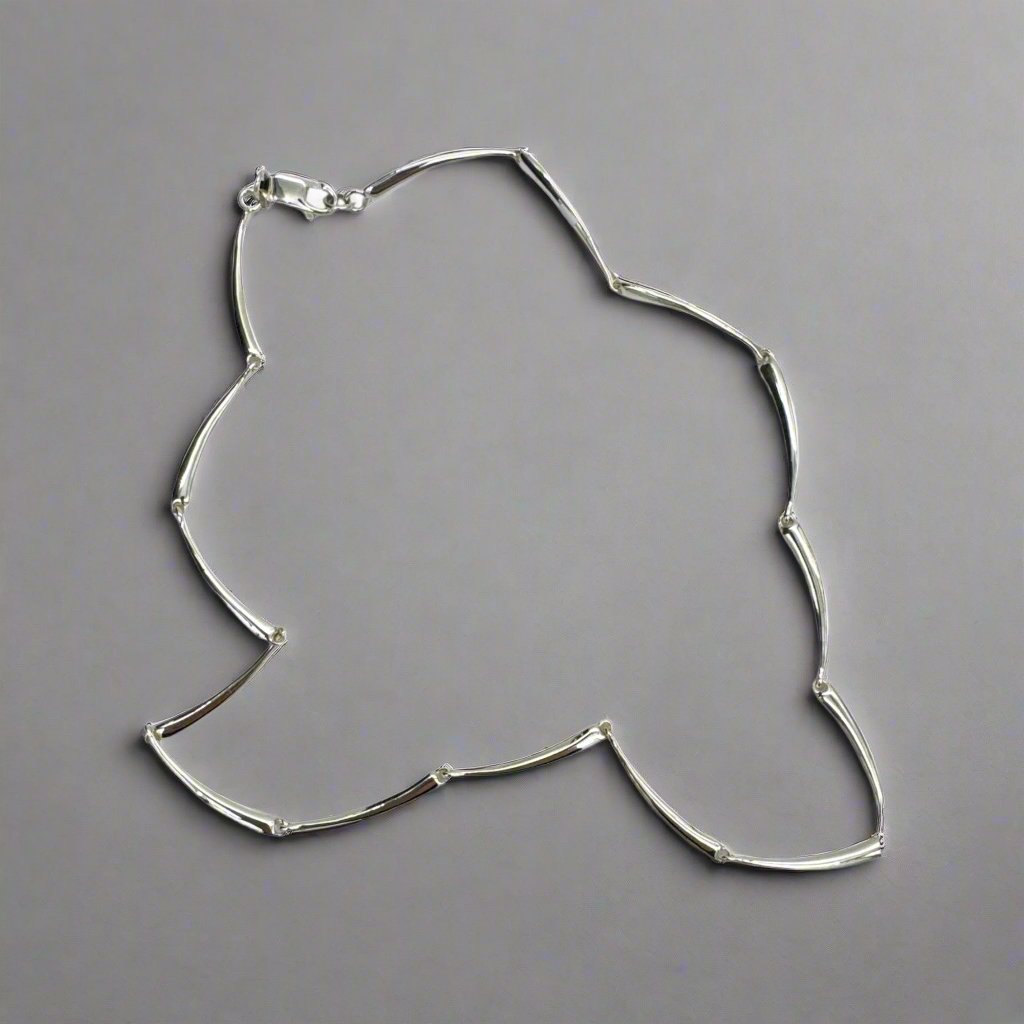 Indulge in a touch of sophisticated elegance with our Twig Link Necklace. Handcrafted from premium sterling silver, the curved sections create a mesmerizing link pattern, making this necklace a truly unique statement piece. Enhance your style with subtle luxury.