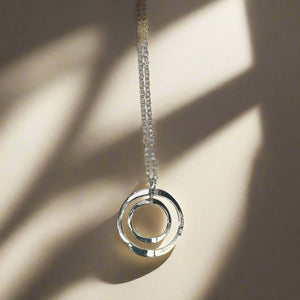 Crafted from luxurious sterling silver, the Prism Pendant is a work of art that will add a touch of sophistication to any outfit. Its hand-hammered design creates a unique texture, making it a one-of-a-kind piece. Elevate your style with this exclusive addition to your jewelry collection.