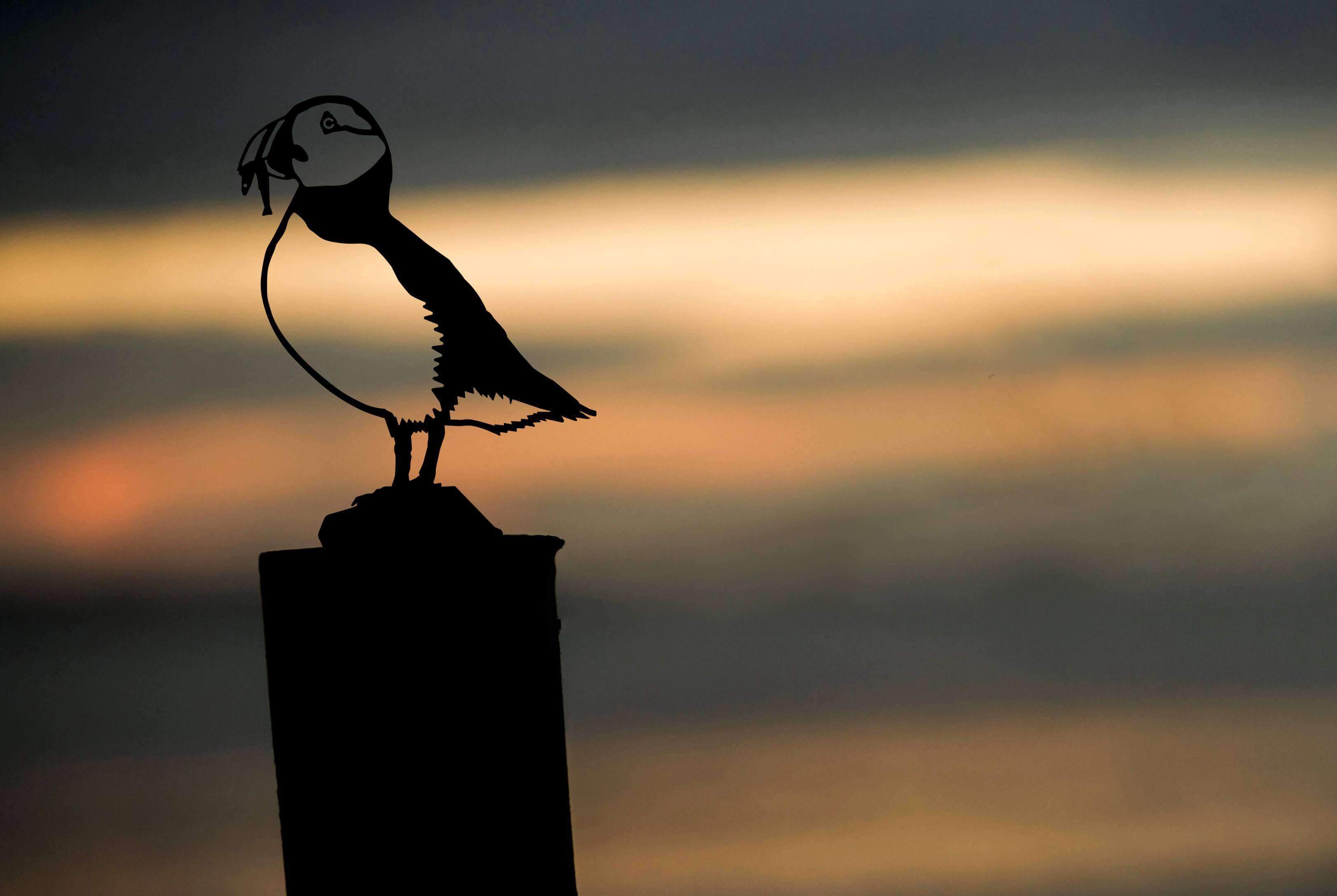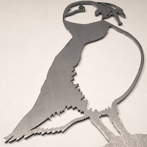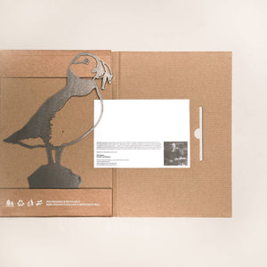 Puffin is: ✓ 9 inches high by 7 inches wide (exl. the branch), approximately 8oz ✓ Easy to send -our regular boxes are standard letter size, measuring 11"x 8"x 1/4" ✓ Made in a family-owned factory, right here in the US ✓Crafted from 1/8-inch Corten steel and designed to last a lifetime ✓ Easy to install by inserting firmly into the ground, or simply wedging between two solid surfaces