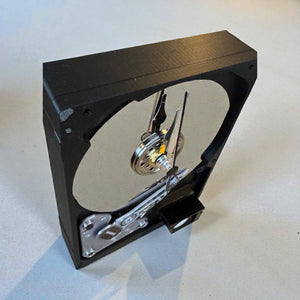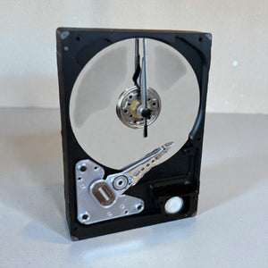 This clock is built from the quiet remains of a hard drive—once tasked with storing memories, now reimagined to measure time.