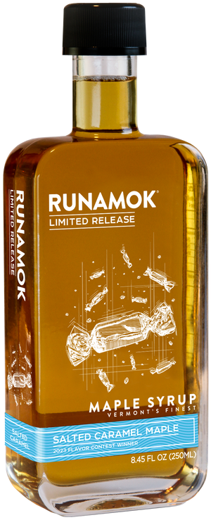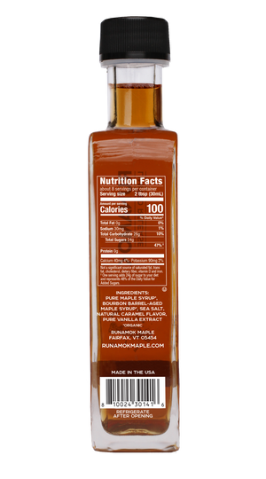 The essence of caramel, a dash of salt and the slightest bit of our Bourbon Barrel-aged Maple Syrup. A perfect year-round flavor, Salted Caramel Maple Syrup is great in coffee, over breakfast favorites (pancakes, waffles, granola), drizzled on ice cream!