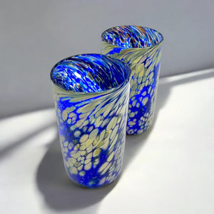 Serve up some fun with the Cobalt Speckle Juice Cup! Hand blown in New England, this glassware adds a touch of quirkiness to your drinkware collection. Enjoy a refreshing beverage in style with this unique piece.