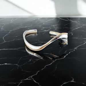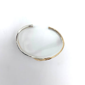 Gentle 14K Gold Fill wire wave over a wider Hammered Sterling Silver flattened and twisted band cuff.