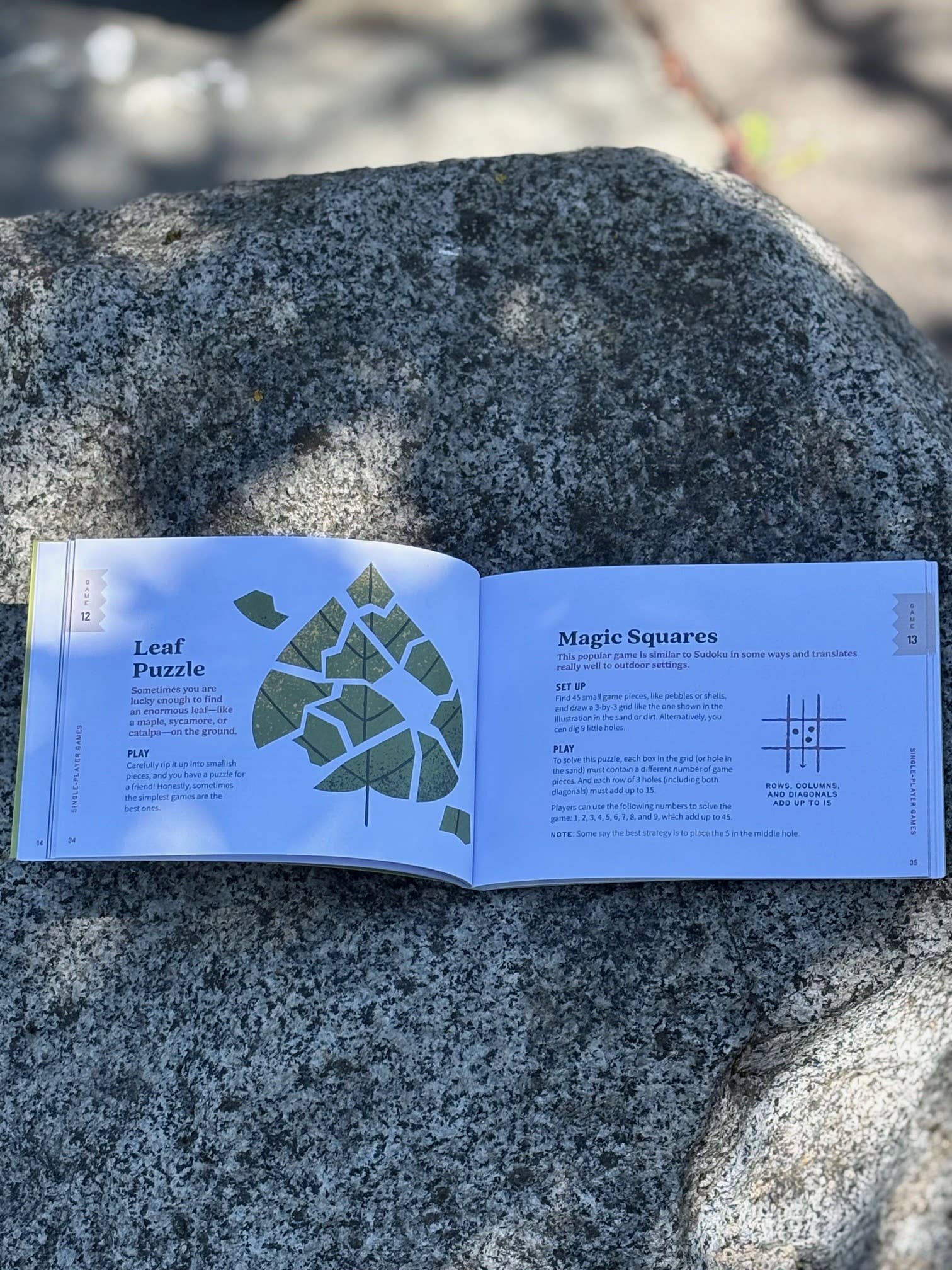 All of the games in Sticks, Stones & Pinecones are easy to set up and require only the materials you can sustainably forage around you, such as pinecones, pebbles, sand, leaves, and twigs. You might not even have to get up out of your camp chair!