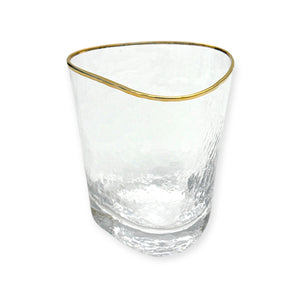 Enjoy drinks in style with this beautifully crafted Triangular Double Old Fashion Glass. Featuring a distinctive triangular shape and expertly hammered glass, this elegant glass is finished with a luxurious gold rim for a truly luxurious finish. A perfect addition to any home bar.