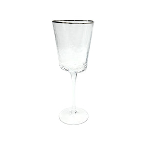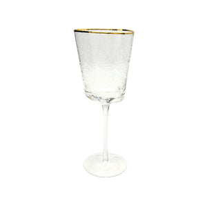 This Triangular Wine Glass uses beautifully hammered glass, complemented with a gold rim for a truly elegant look. Its triangular shape adds a modern touch to any dinner table, making it a great addition to your home. Enjoy a glass of your favorite wine in style!