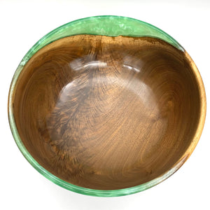 This Walnut Crotch Wood and Emerald Green Resin Bowl beautifully combines the natural elegance of walnut crotch wood with the modern touch of green resin. Handcrafted to perfection, this bowl adds a unique and stylish touch to any space. Made with high-quality materials, it is durable and long-lasting.