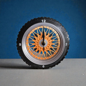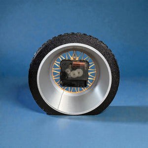 The Wheely Tire’d Clock blends industrial humor with thoughtful material choices. The outer “tire” is made from flexible TPU, giving it a soft, rubber-like feel that absorbs vibration and adds a subtle tactile contrast. The clock face is printed in silk PLA for a smooth, refined finish, with a silver-accented rim that gives it a clean, automotive-inspired edge.