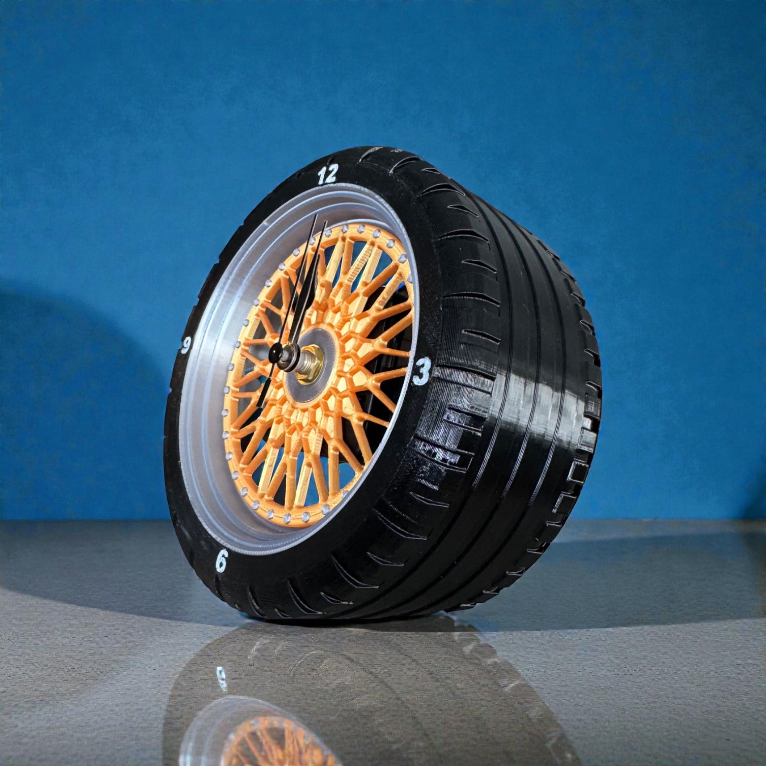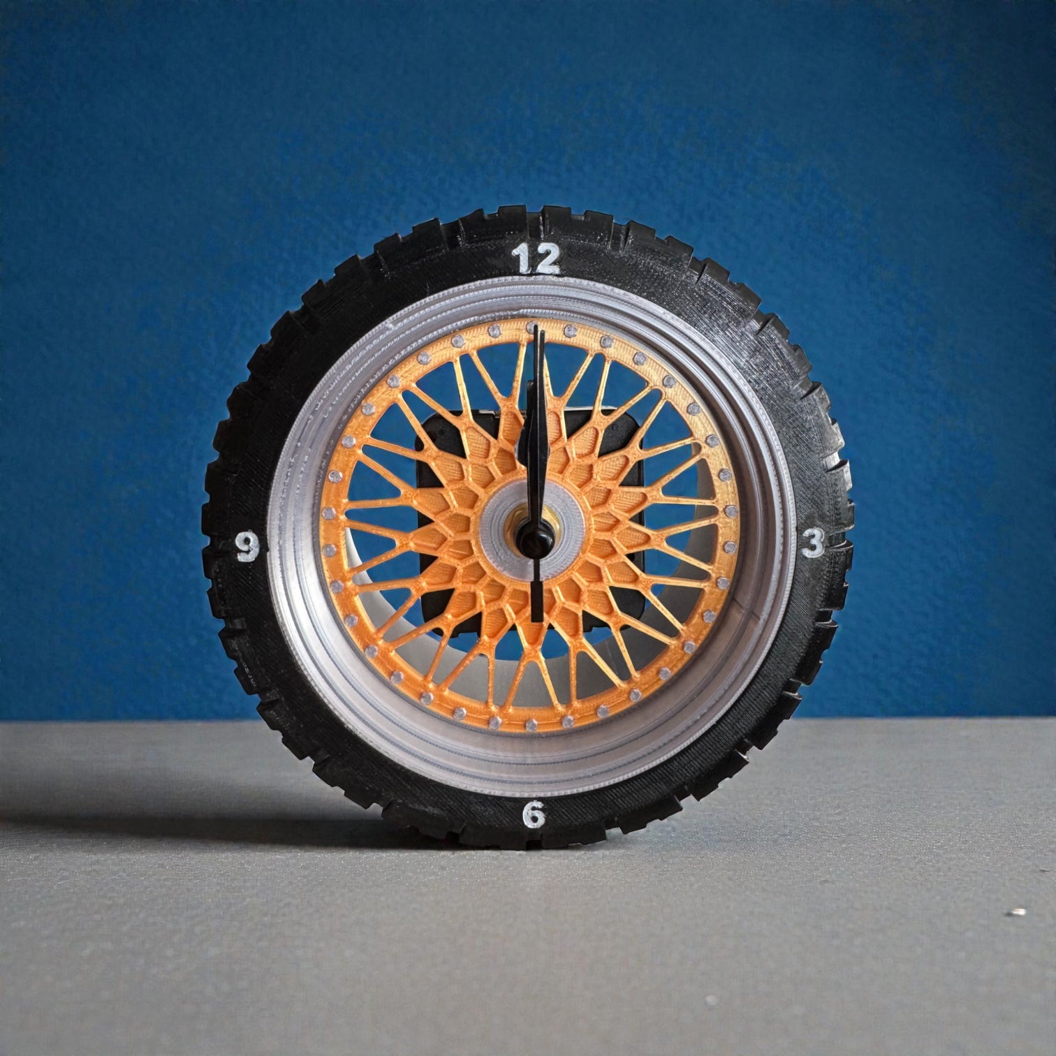 This isn’t just a novelty—it’s a well-built object. The TPU tire adds depth and durability, while the rigid silk PLA face keeps the design crisp and legible. Together, they create a clock that feels playful but intentional, equally at home in a workshop, studio, office, or modern living space.